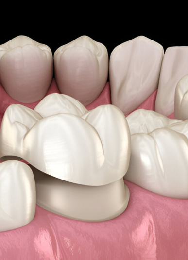 A high-quality ceramic crown is custom-crafted to match your natural teeth in color, shape, and function, then carefully fitted for comfort.